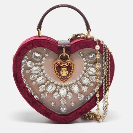 Dolce & Gabbana Burgundy Velvet & Snakeskin Crystal My Heart Box Top Handle Bag
